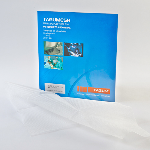 La Malla de Polipropileno Tagumesh es recomendada para los procesos herniarios de la pared abdominal y las eventraciones por vía laparoscópica o cirugía abierta. Está formada por polipropileno monofilar, que se confecciona en una fina malla elástica con gran estabilidad dimensional. Elaborada de fibra de polipropileno extrusionado. La Malla de Polipropileno Tagumesh se caracteriza por ser una malla fina y de forma muy estable. Se adapta de manera óptima a los movimientos de estiramiento y dilatación del paciente, resultantes del movimiento del cuerpo y de las contracciones musculares. La Malla de Polipropileno Tagumesh es una malla de refuerzo tejida, indesmallable, confortable, transparente y no absorbible.